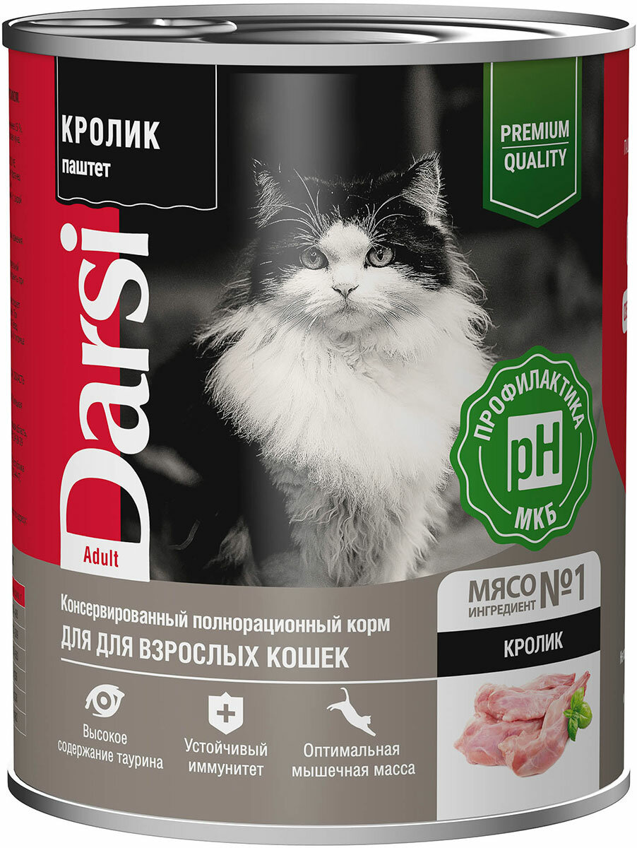 DARSI ADULT CAT для взрослых кошек паштет с кроликом банка 340 гр 340 гр х 6 шт