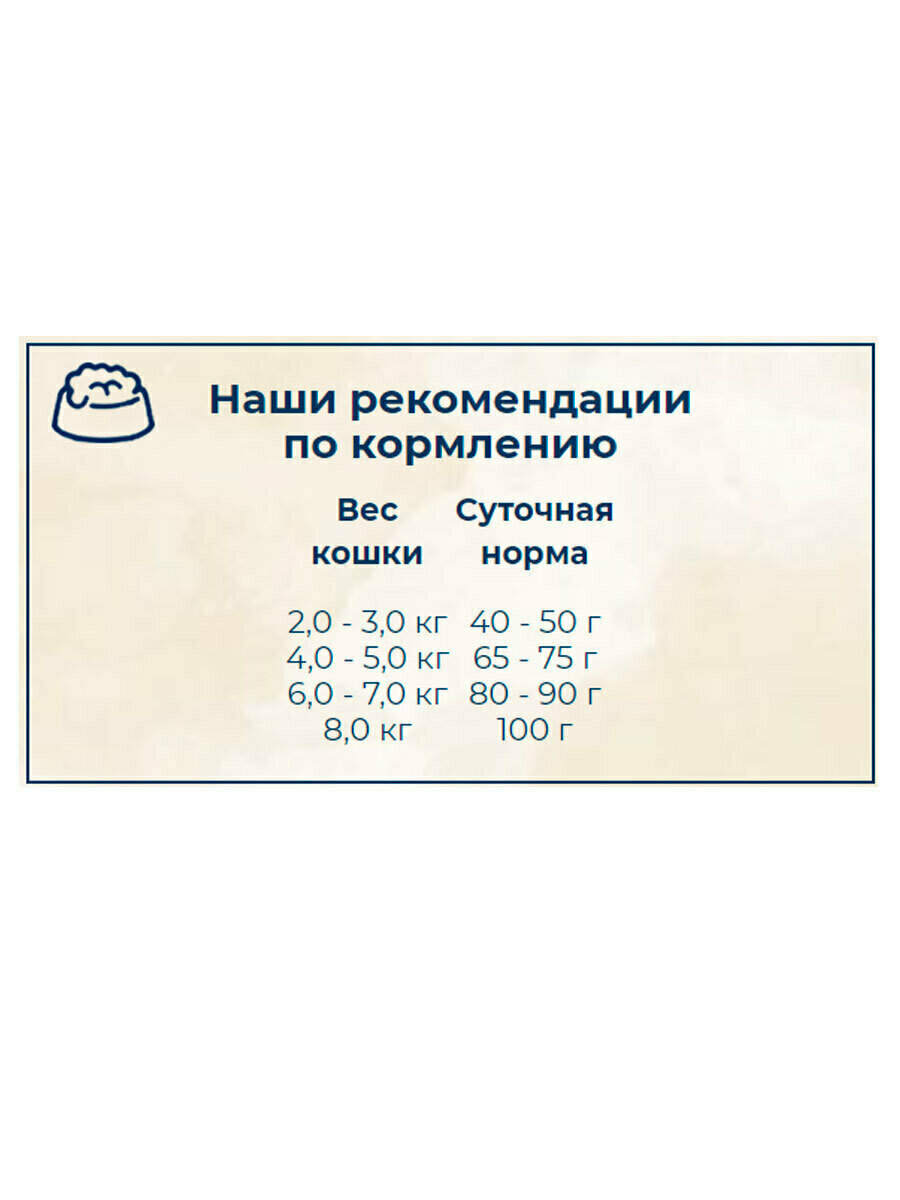| Плюсы: | Сытный, хорошо воздействует на шерсть, хорошо подходит для линяющих и длинношерстных кошек, укрепляя шерсть. |