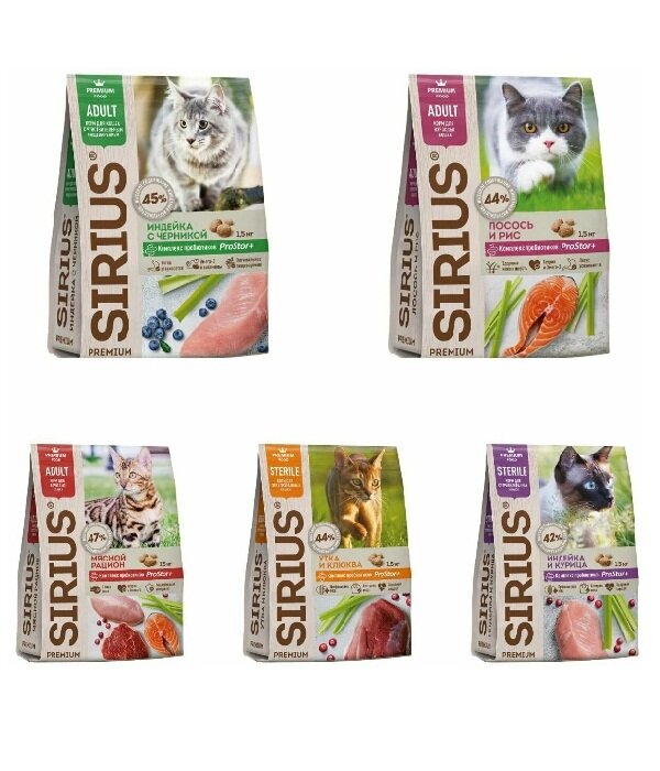 SIRIUS (Сириус) корм сухой премиум класса для котят С мясом индейки 1,5 кг