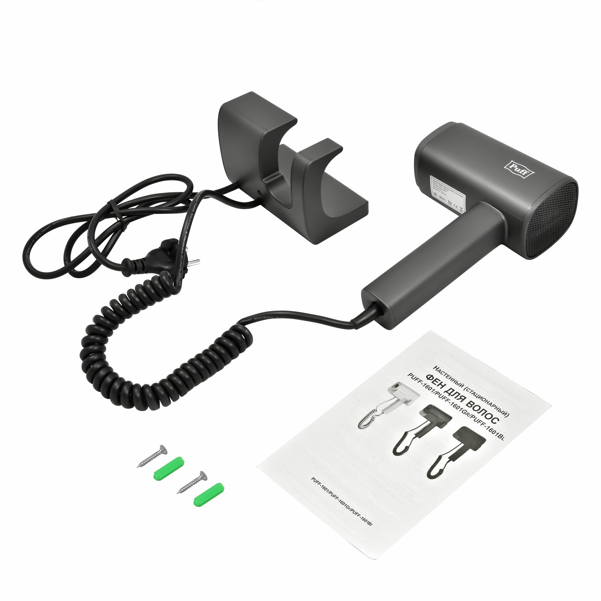 Фен для волос настенный Puff-1601Gr, серый матовый, Арт.: 1405.011