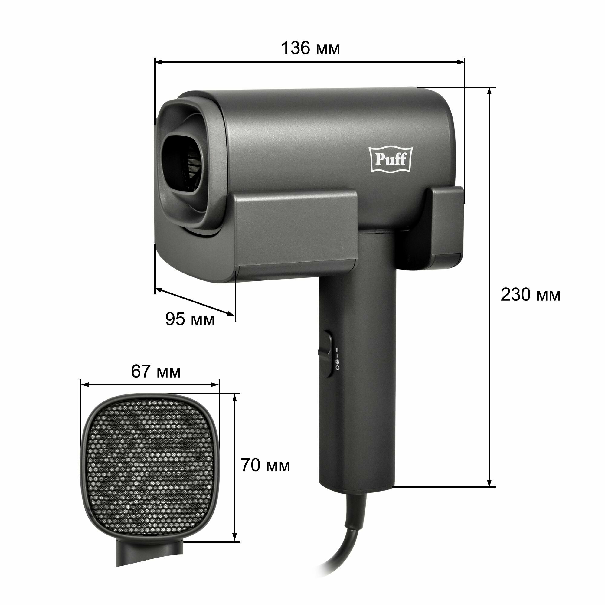 Puff Фен Puff-1601Gr, настенный, 1600 Вт, 2 скорости, хол. воздух, серый