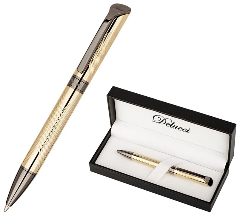 Купить Ручка шариковая Delucci "Completo" синяя, 1.0мм, корпус золото/оружейный металл, поворотн., подарочная упаковка