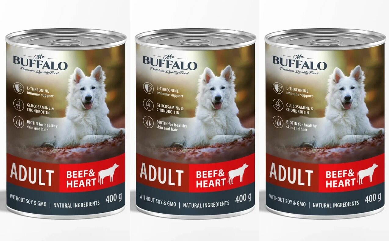 Купить Баффало Mr.Buffalo Adult Dog 3 шт по 400г говядина и сердце консервы для собак