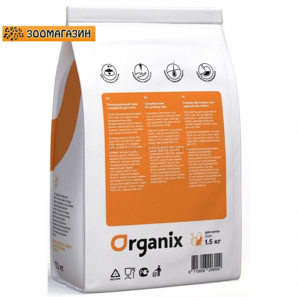 Корм Organix Kitten Turkey для котят, с индейкой, 1.5 кг