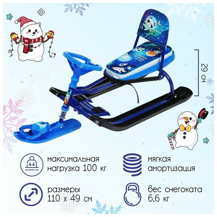 Снегокат детский со спинкой, ремнем безопасности автоматическим тросом Nika "Тимка спорт 4-1" (космический)