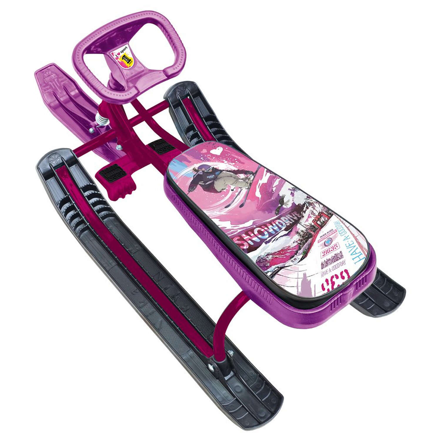Снегокат приличный, взяли бело-розовый с бабочками. Качество каркаса и комплектующих хорошее. Цена тоже хорошая, рекомендую к покупке. |