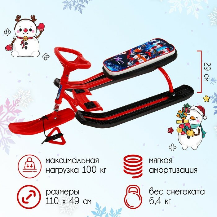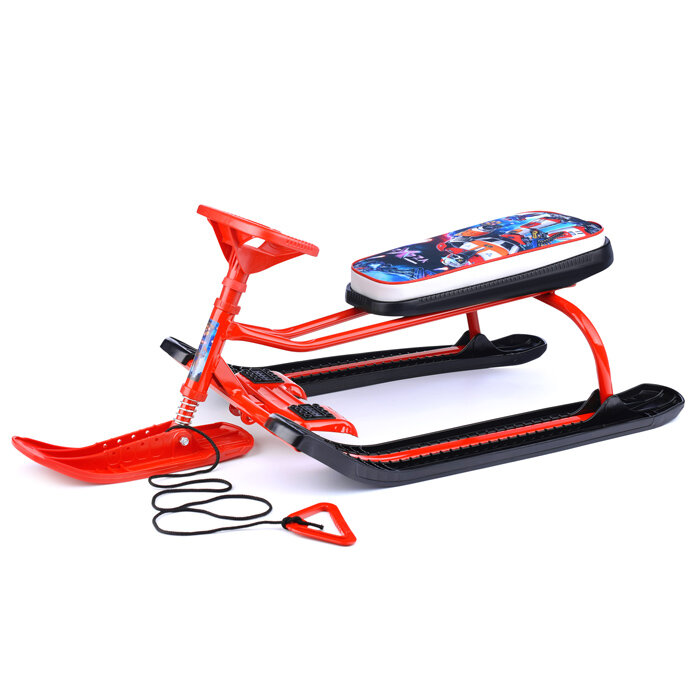 Снегокат Nika, Тимка спорт 2+, ТС2+/ГР, 42 см, галактика, роботы, красный, красный каркас, спортивный руль, трос
