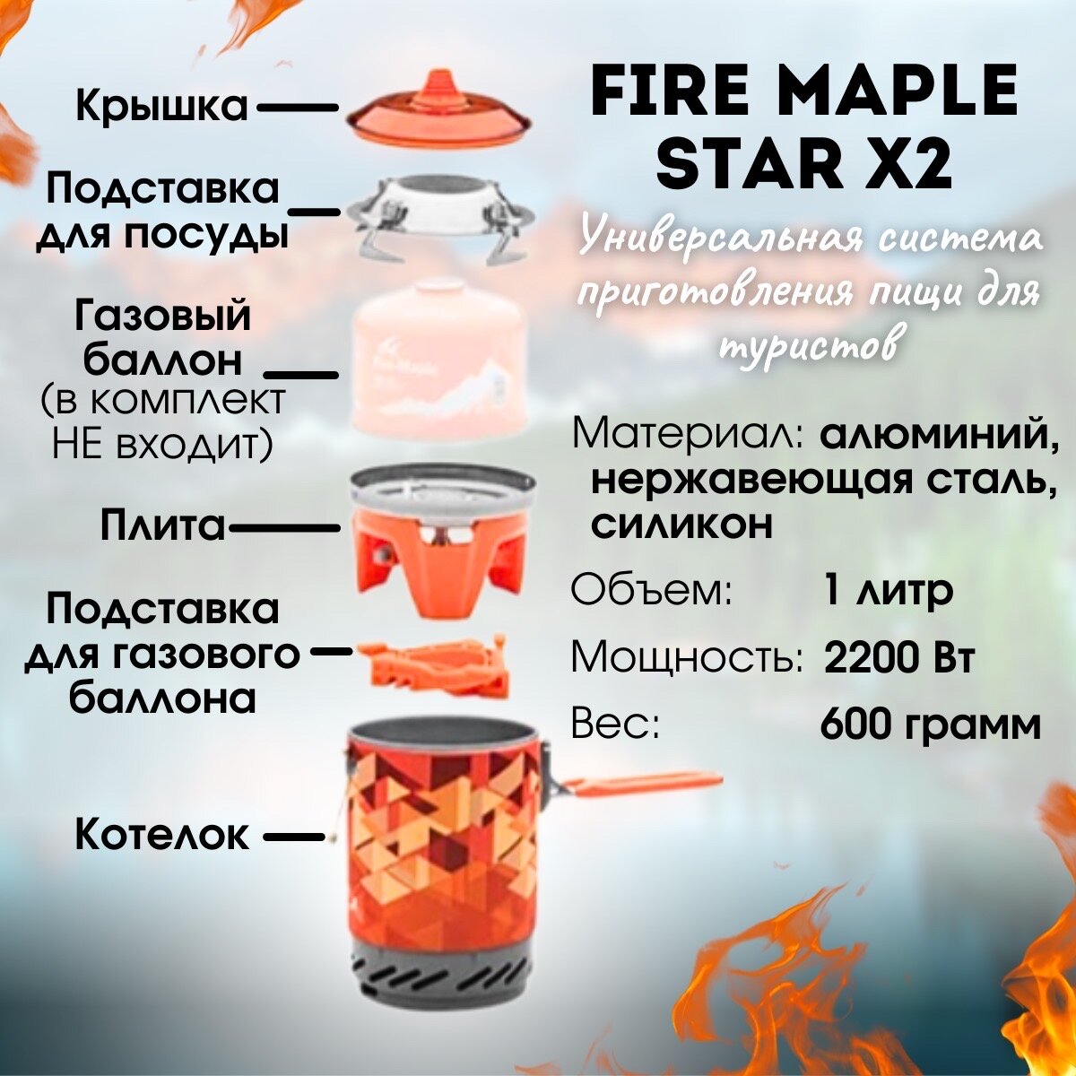 Газовая туристическая горелка Fire Maple X2 ,система приготовления пищи интересное: