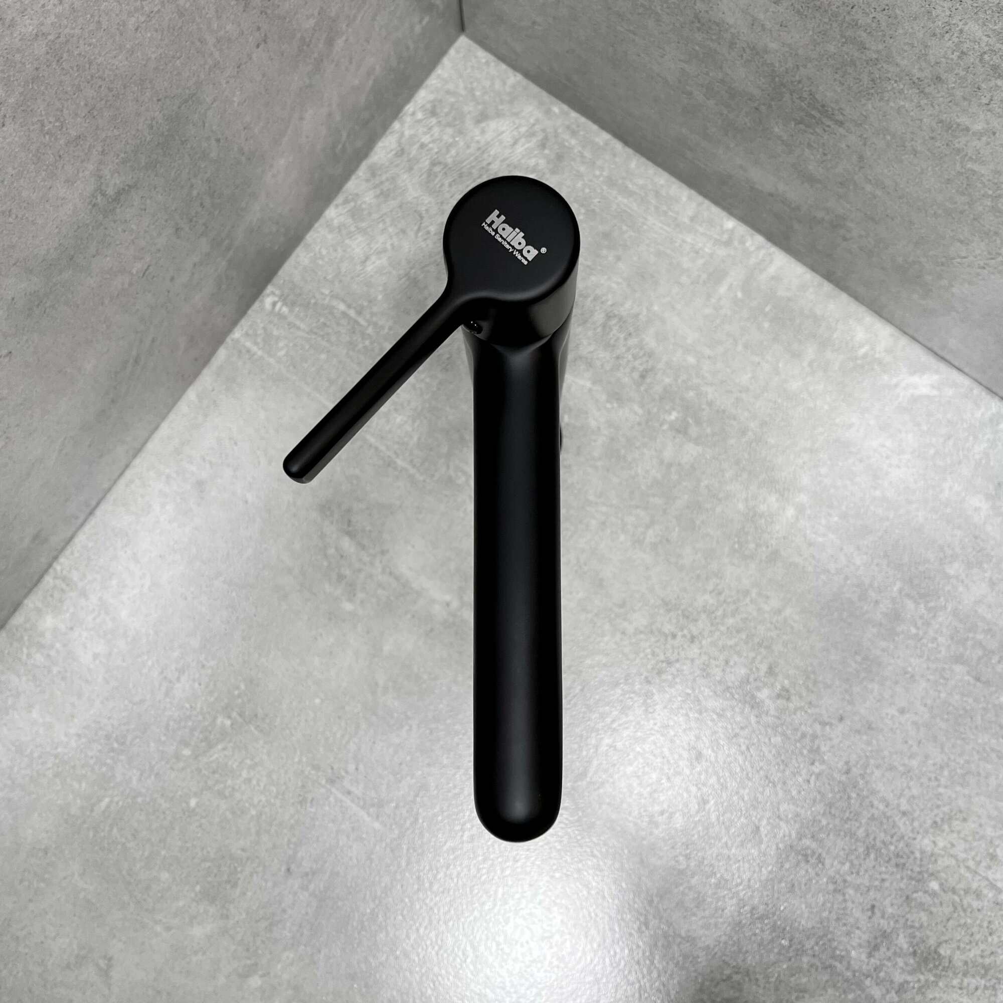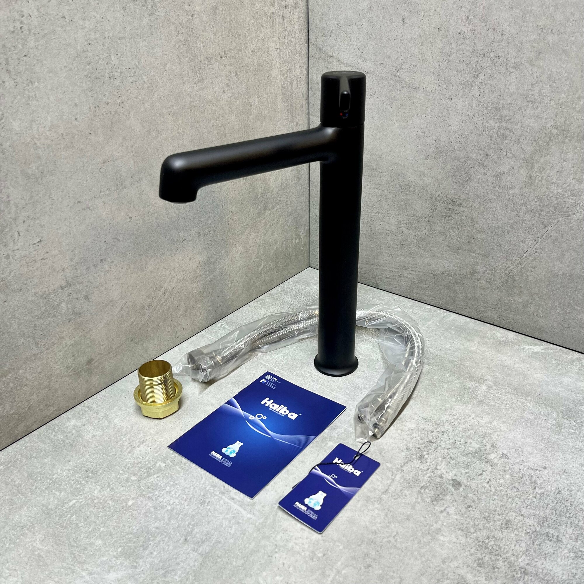 Высокий однорычажный, монолитный смеситель Haiba HB11814-7 для раковины, накладной чаши-раковины,черный