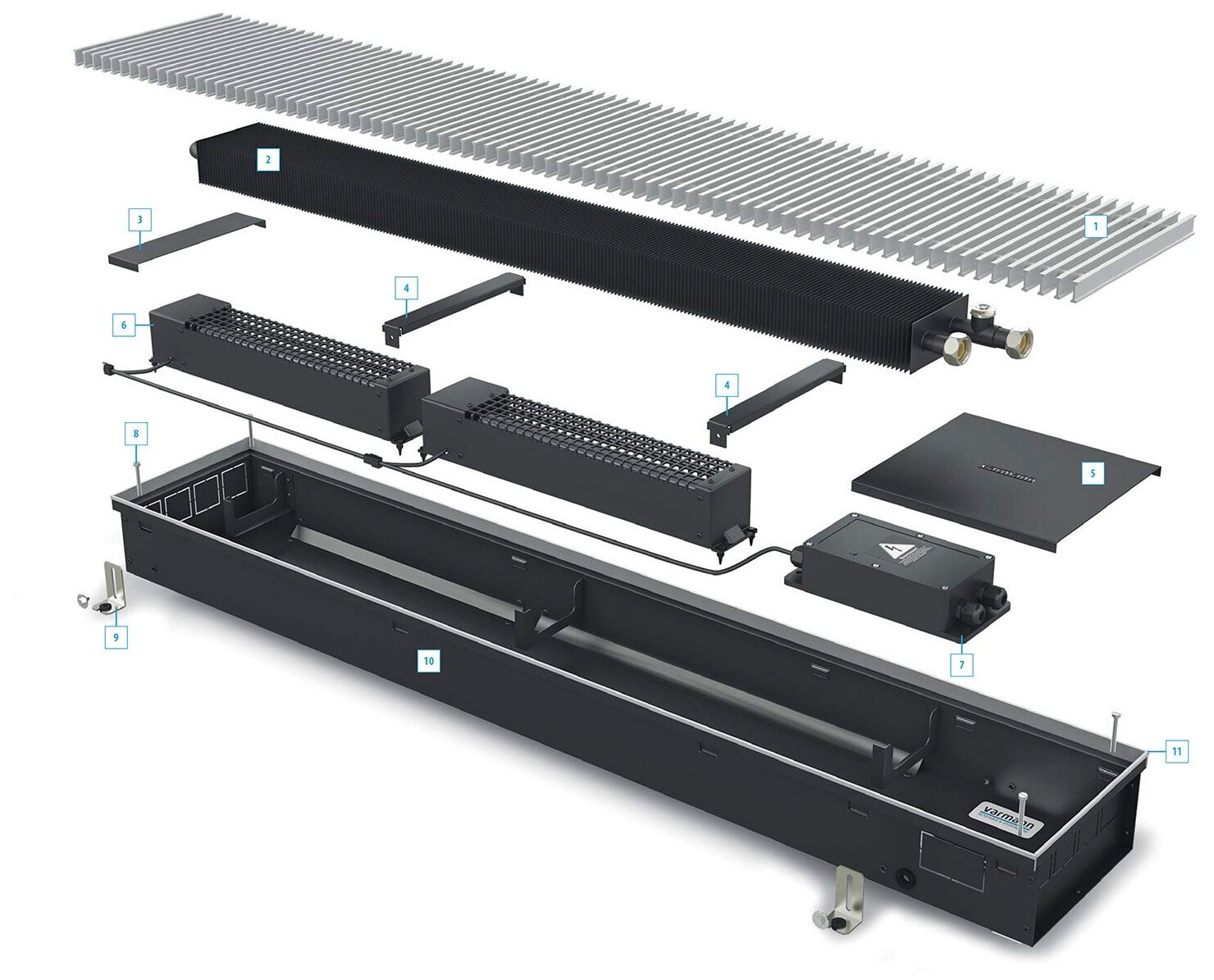 Конвектор Varmann Q 230.110.3000 RR U EV1 внутрипольный с принудительной конвекцией