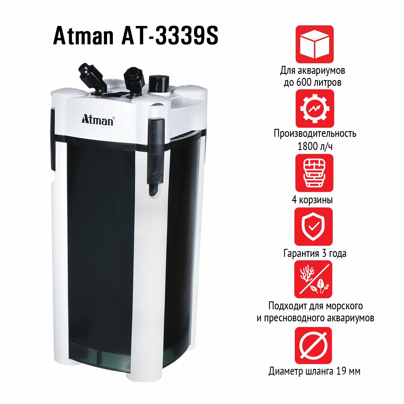 Ниже Вы можете прочитать отзывы на Внешний аквариумный фильтр Atman AT-3339S, ознакомится с подробными характеристиками, посмотреть интересные обзоры и фотографии на Внешний аквариумный фильтр Atman AT-3339S.