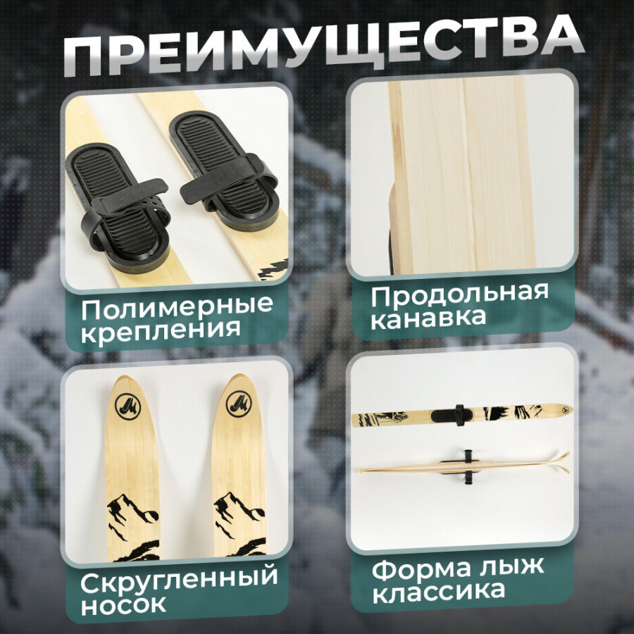 Лыжи охотничьи деревянные Маяк Лесные 175 х 11 см с полимерным креплением