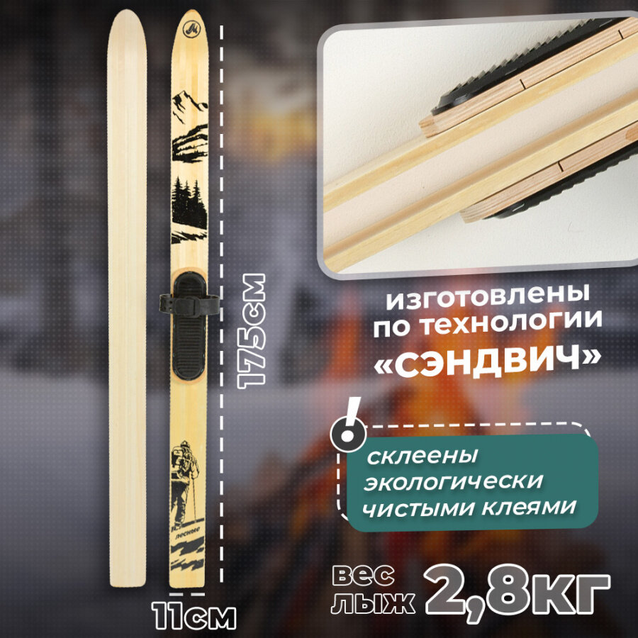Комплект охотничьих лыж Маяк Лесные 175х11 см, дерево с полимерным креплением / Промысловые для охоты, рыбалки, туризма