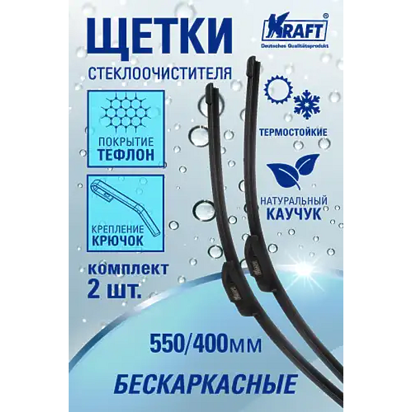 Купить KRAFT KT 830919 к-т бeскаркасных щеток стеклоочистителя teflon 550 / 400 мм, 1 адаптер