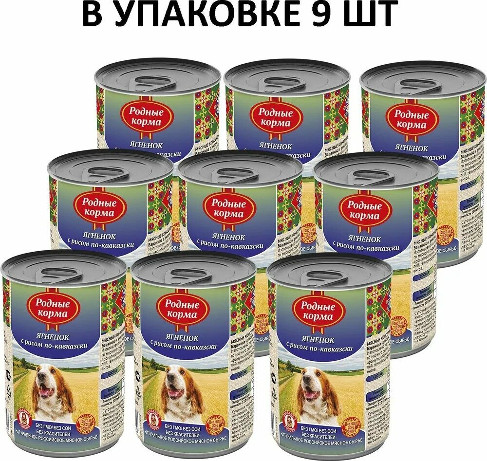 Родные корма консервы для собак ягненок с рисом по-кавказски 410 г (9 штук)