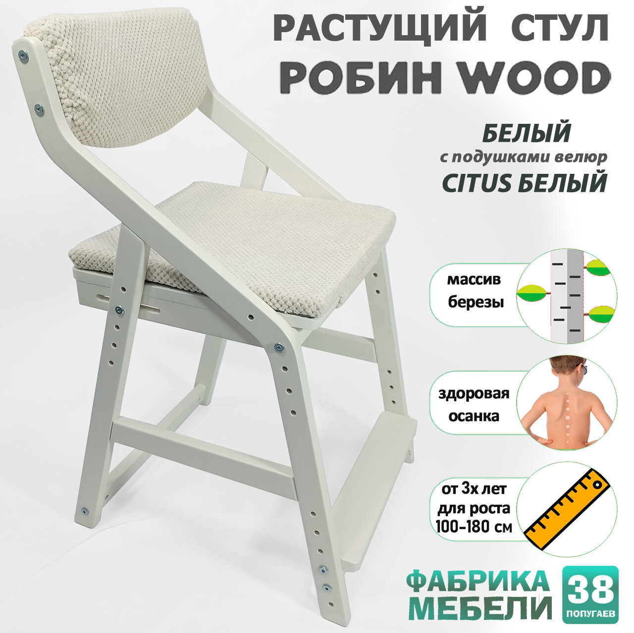 Детский растущий стул Робин WOOD Вуди с подушками, цвет Белый/Сан-Леон