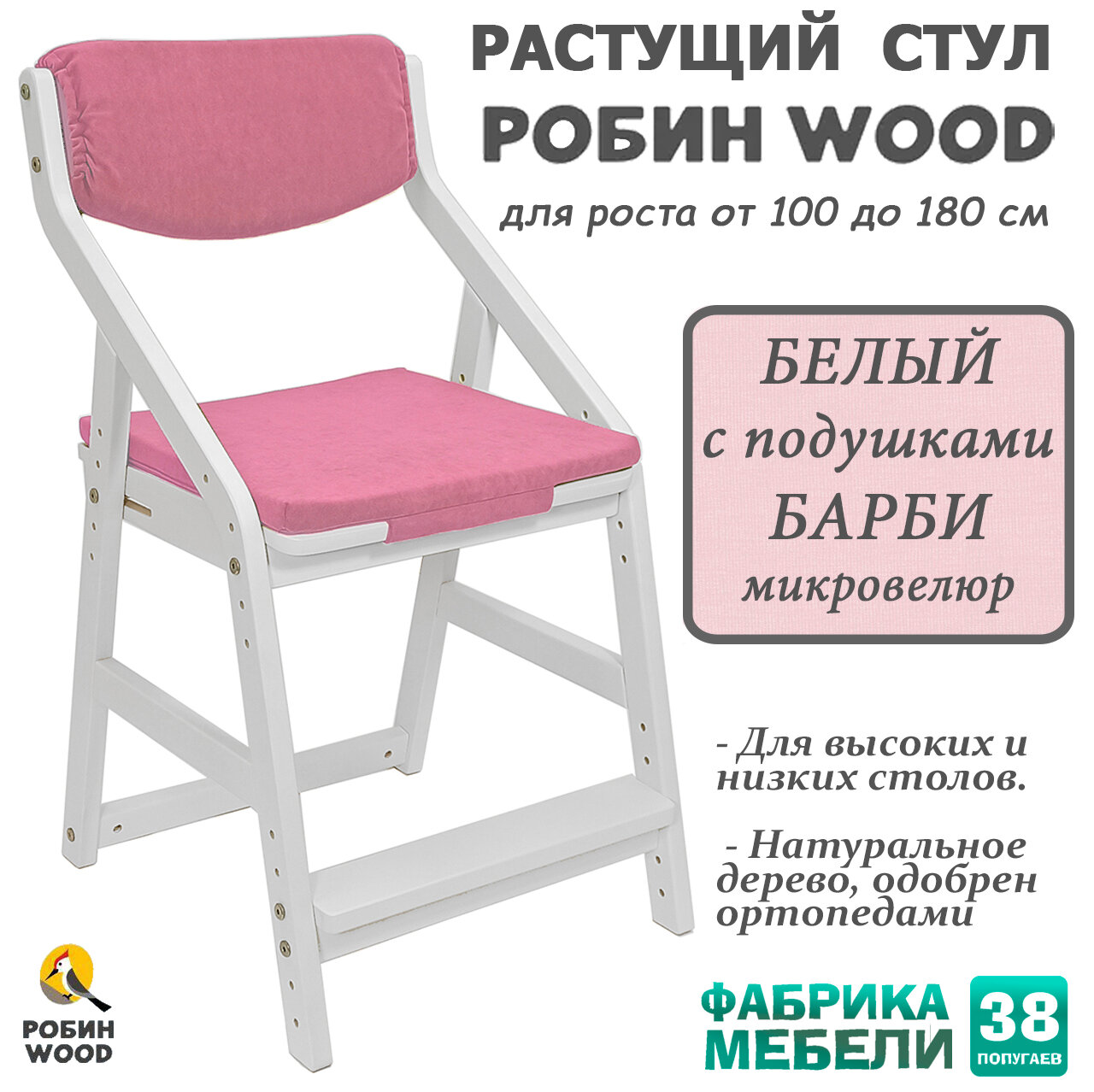 Ниже Вы можете прочитать отзывы на Растущий стул Робин Wood с подушками (38 Попугаев), цвет: Белый/барби, ознакомится с подробными характеристиками, посмотреть интересные обзоры и фотографии на Растущий стул Робин Wood с подушками (38 Попугаев), цвет: Белый/барби.