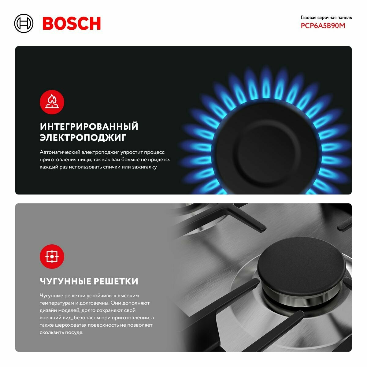 Ниже Вы можете прочитать отзывы на Встраиваемая газовая варочная панель Bosch PCP6A5B90M, ознакомится с подробными характеристиками, посмотреть интересные обзоры и фотографии на Встраиваемая газовая варочная панель Bosch PCP6A5B90M.
