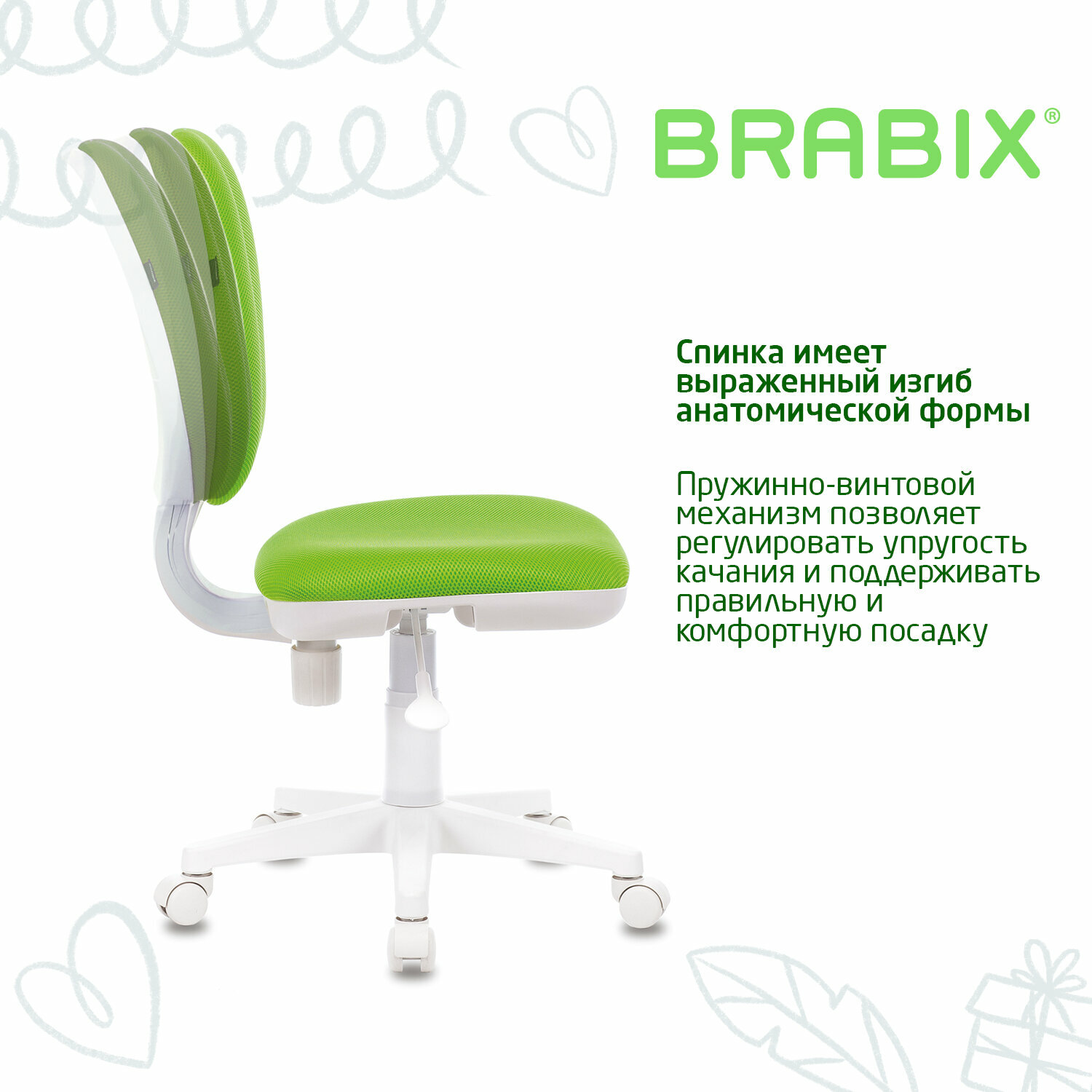 Кресло детское BRABIX "Fancy MG-201W", без подлокотников, пластик белый, салатовое, 532414, MG-201W_532414
