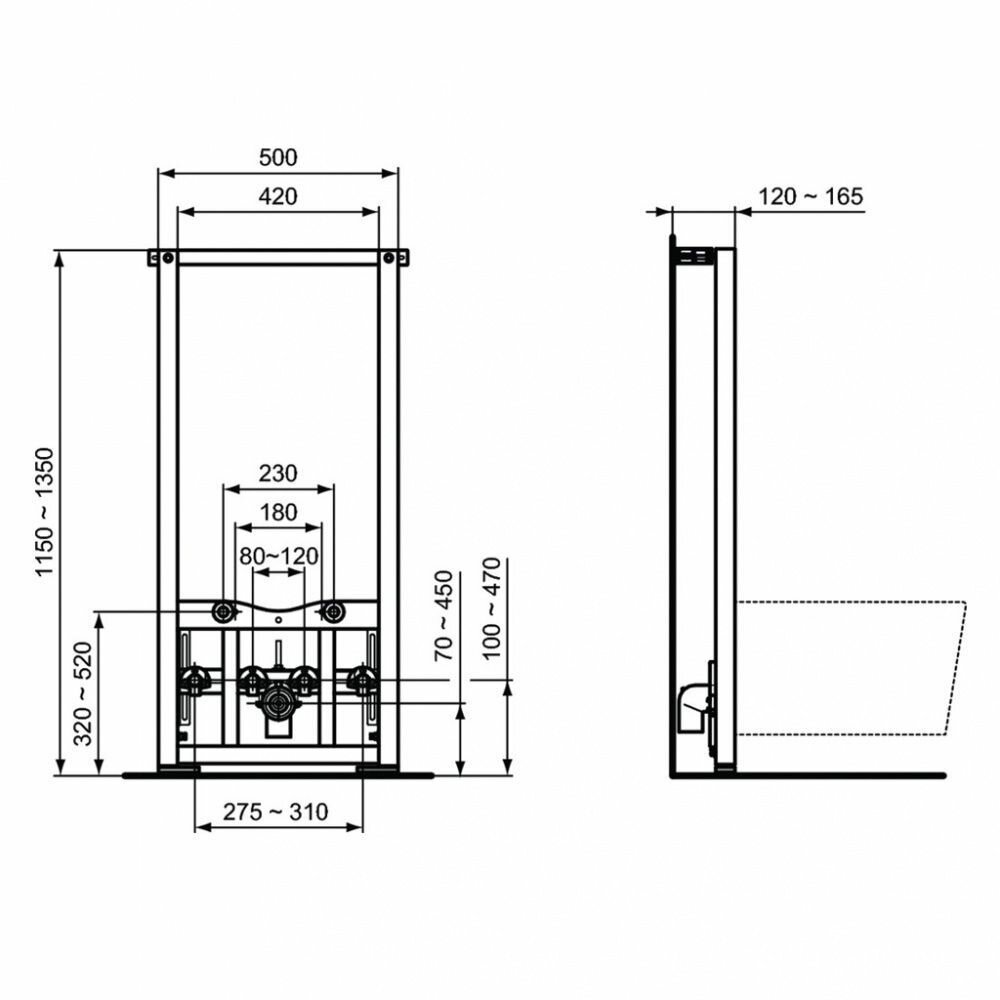 Инсталляция для биде Ideal Standard Prosys 50х16,5х135см, арт. R016267, системы easyfix system