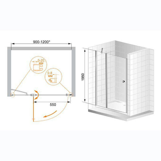 Душевая дверь Radaway Almatea DWJ 120 стекло прозрачное/профиль хром левая