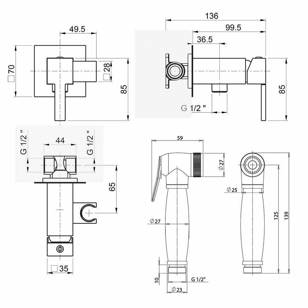 | Держатель для душевой лейки | на смесителе |