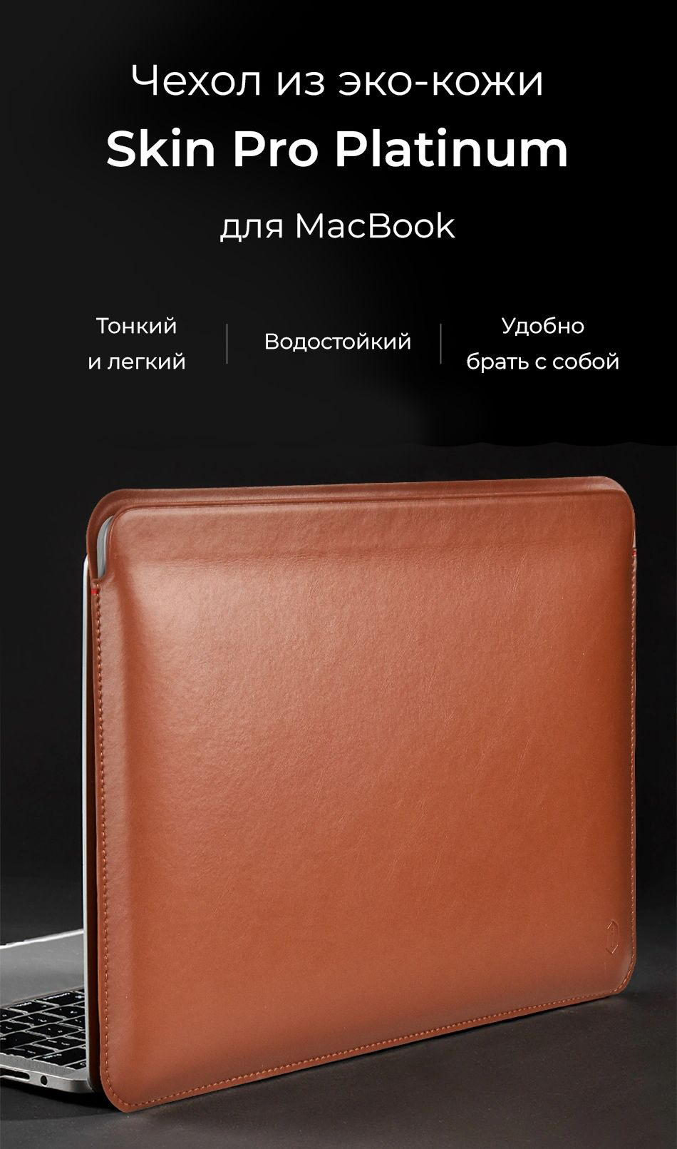 Чехол из экокожи для MacBook Air Pro 13 M1 M2 intel / Чехол WIWU Skin Pro Platinum для Макбук Аир Про 13 2016-2022 (A1932 A2179 A2337 A1939 A1706 A1708 A2159 A2289 A2251 A2338), Цвет: Коричневый