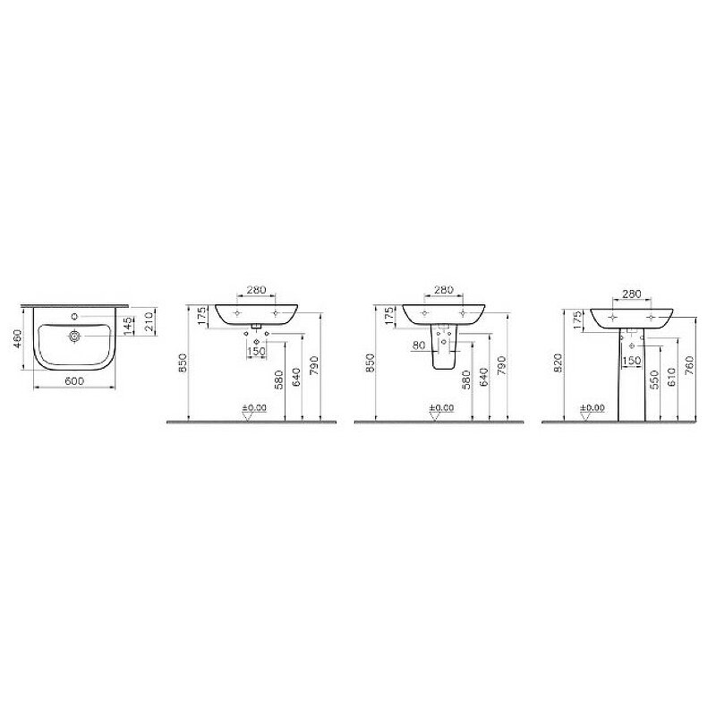 Подвесная раковина Vitra S20 60х46х17,5см, арт. 5503B003-0001, санфарфор
