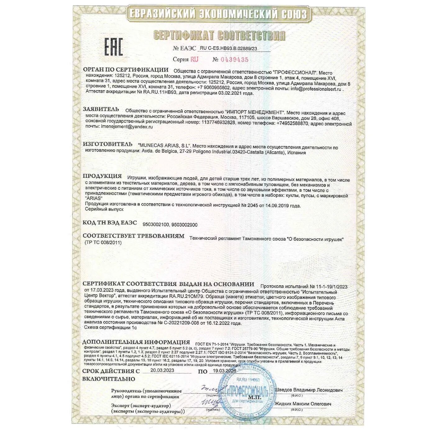 Кукла Arias Elegance с кристаллами Swarowski в голубой одежде со звуковыми эффектами 45 см интересное: