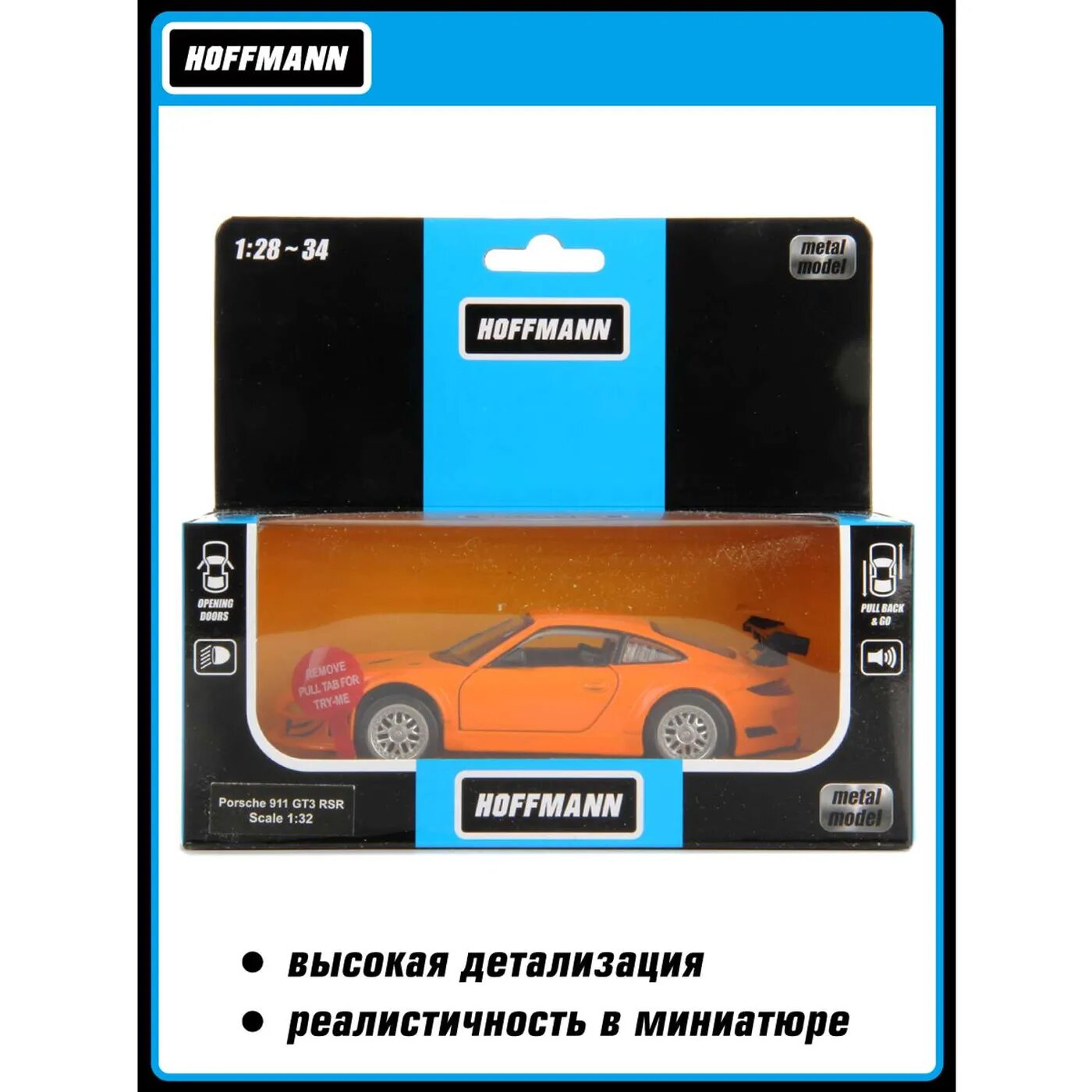 Машина HOFFMANN 1:32 Porsche 911 GT3 RSR металлическая инерционная интересное: