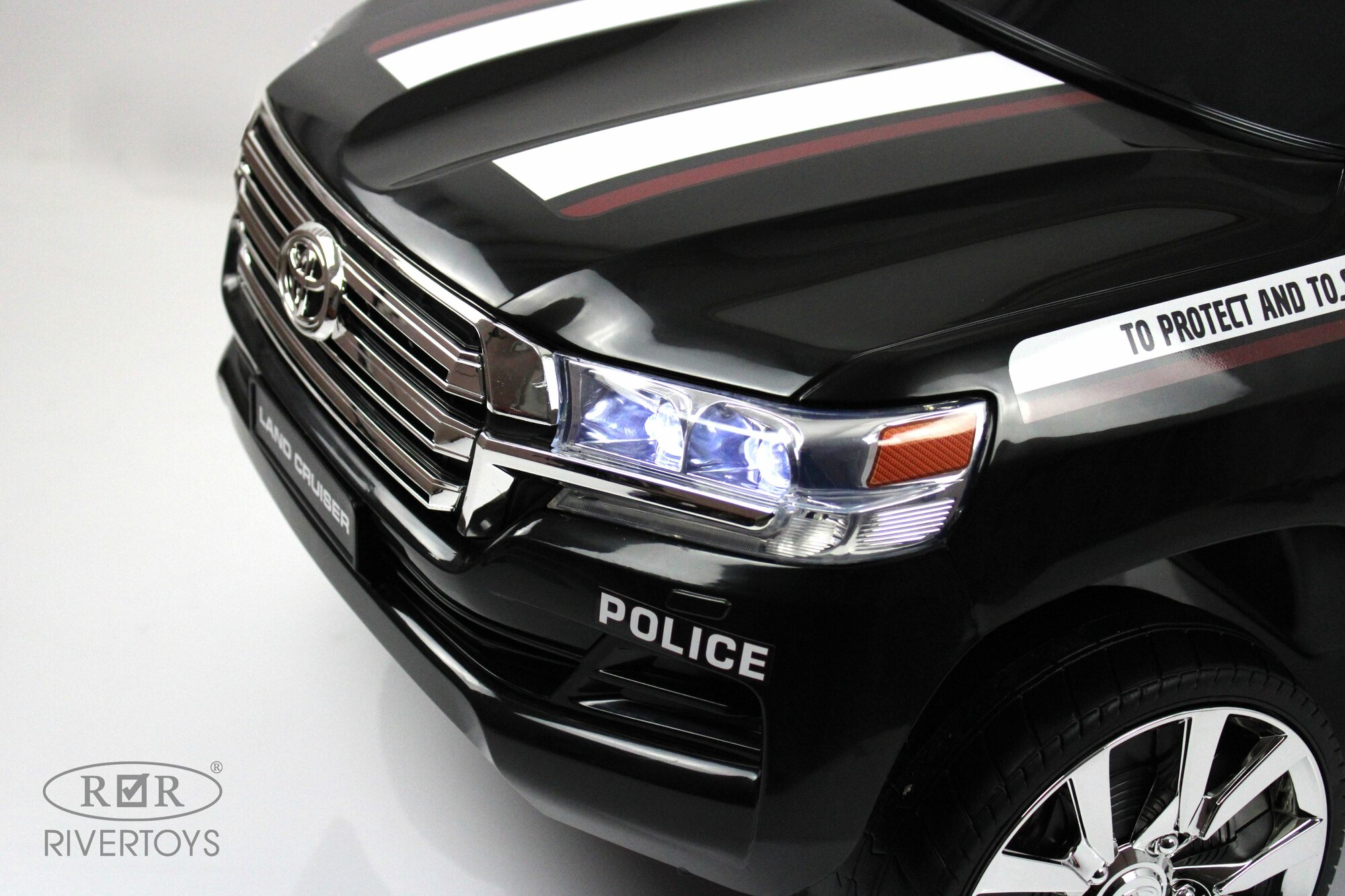 Rivertoys Детский электромобиль Toyota Land Cruiser 200 (JJ2022) полицейский черный