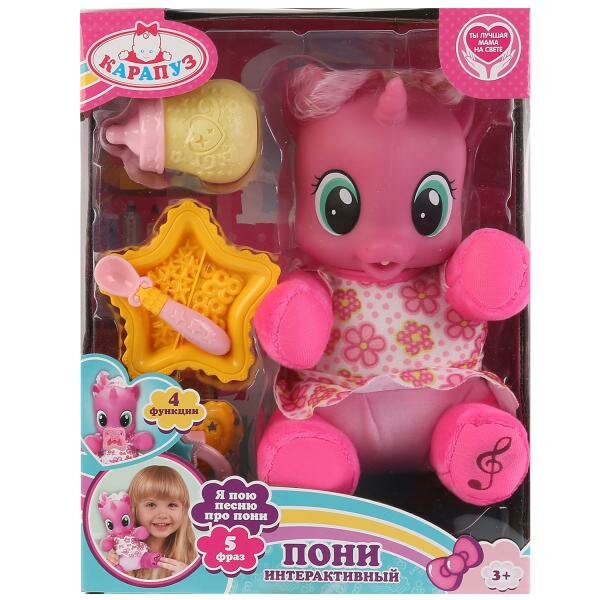 Игрушка Карапуз Пони мягкое тело, 4 функции, озвучен., 5 фраз, песня, аксессуары, 20 см