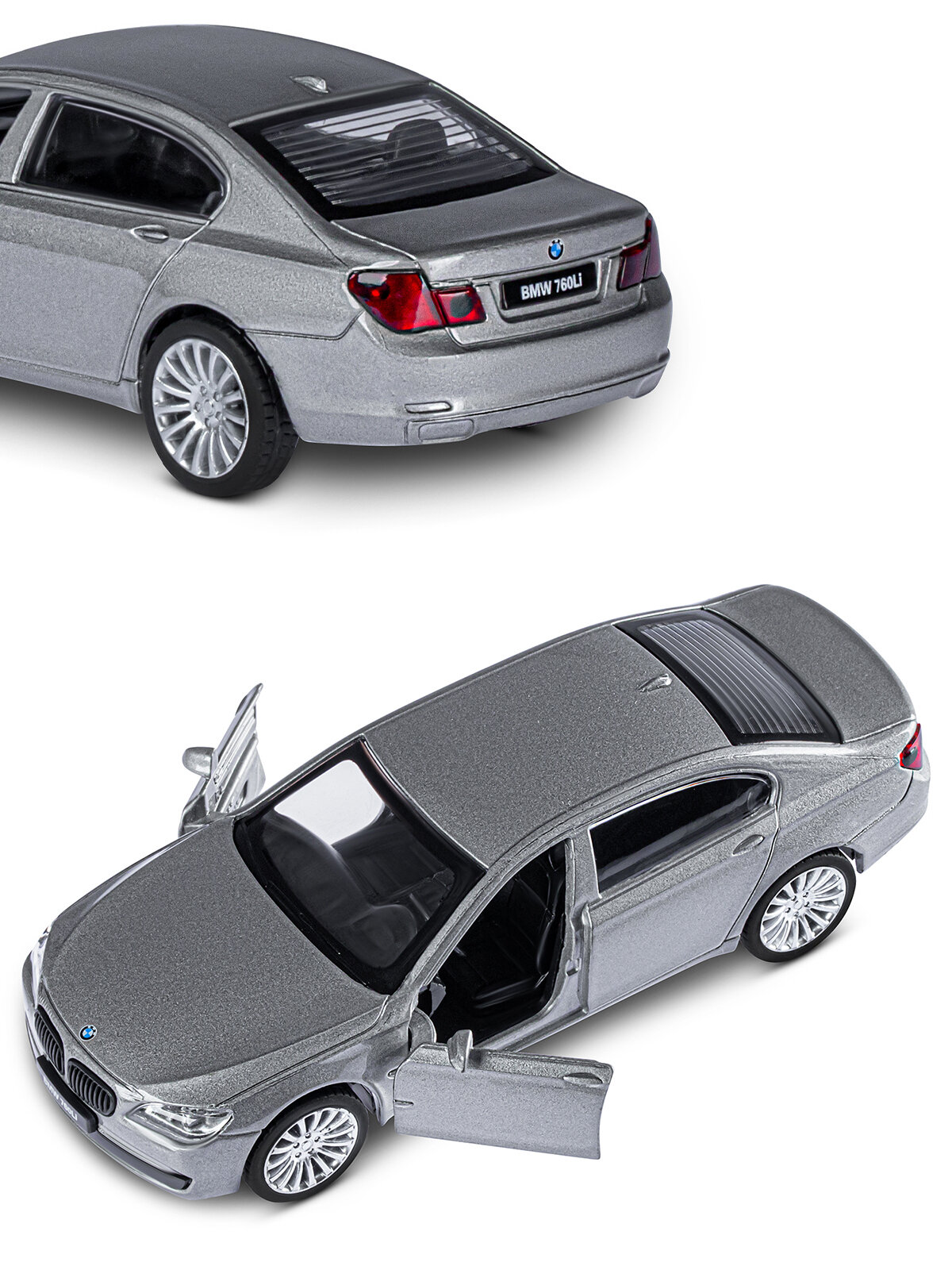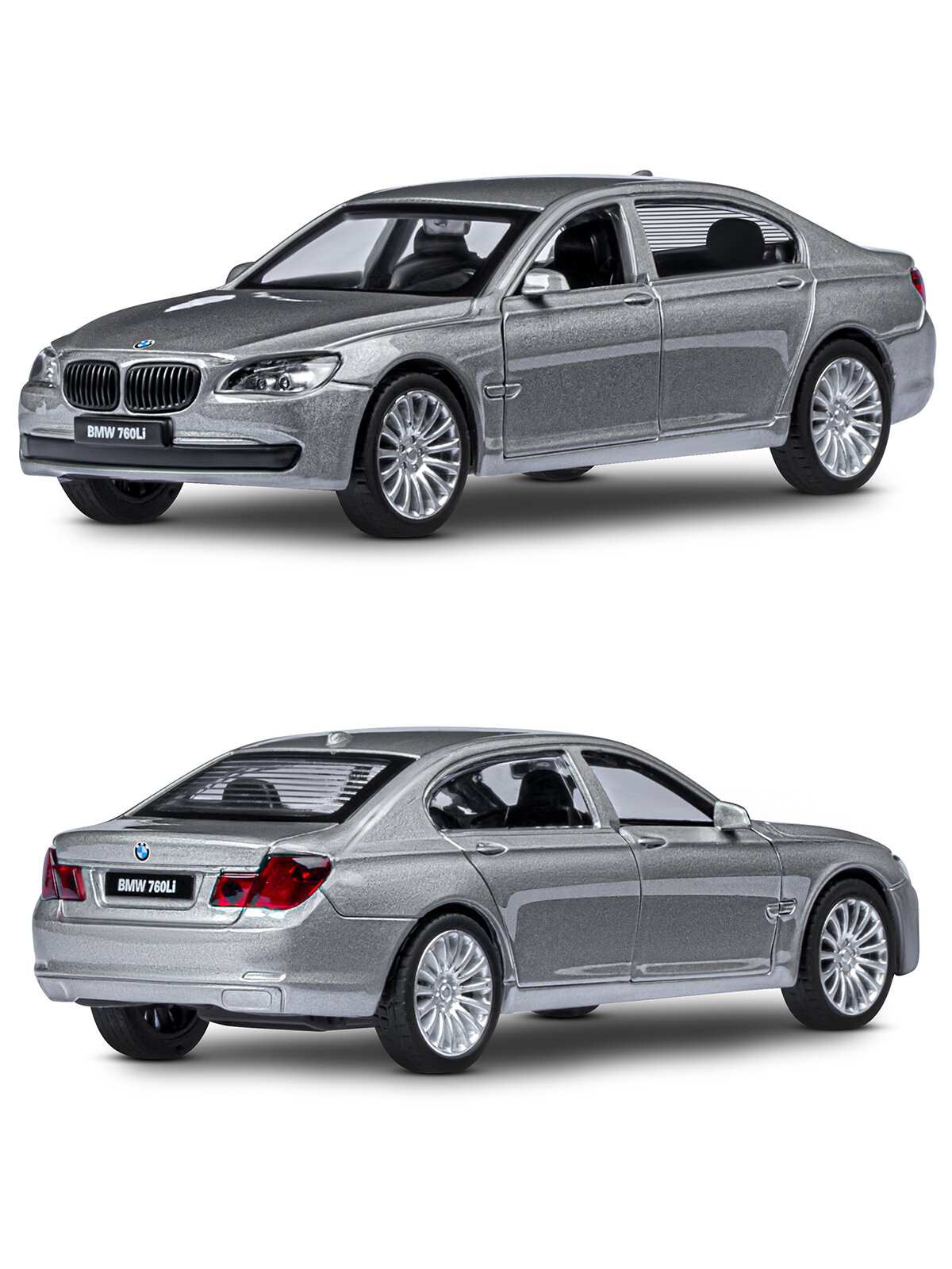 Машинка металлическая ТМ "Автопанорама" 1:46 BMW 760 LI,серый, инерция, открывающиеся двери