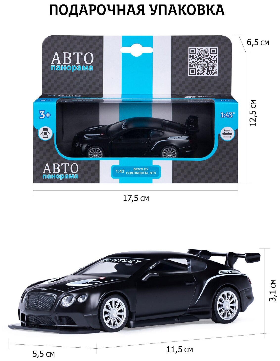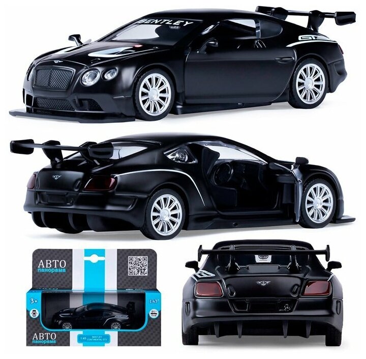 Модель машины Автопанорама Bentley Continental GT3, инерционная, масштаб 1:43, черная (JB1251564)