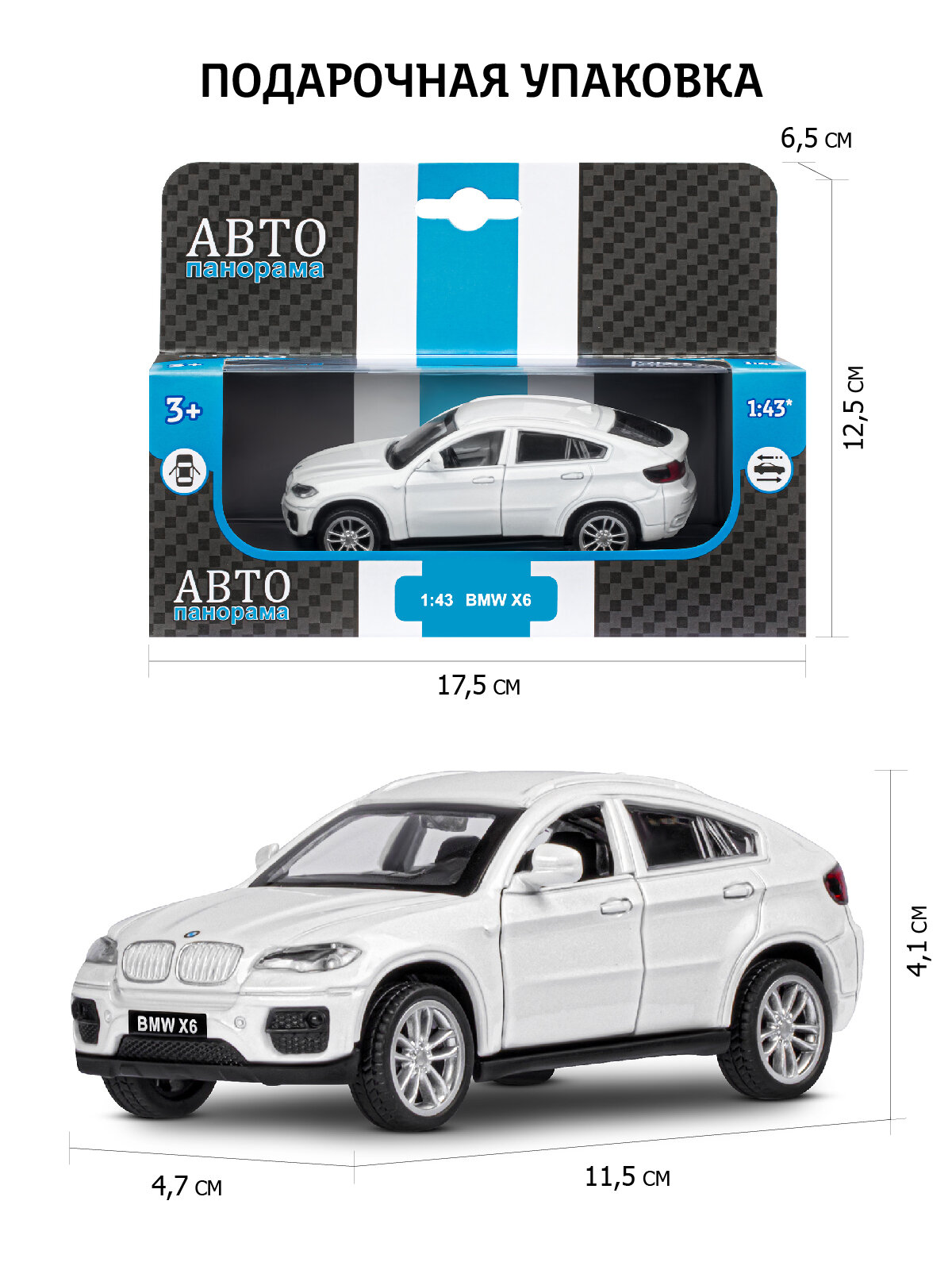 Купить ТМ "Автопанорама" Машинка металлическая 1:43 BMW X6, белый, откр. двери, инерция, в/к 17,5*12,5*6,5 см JB1200133