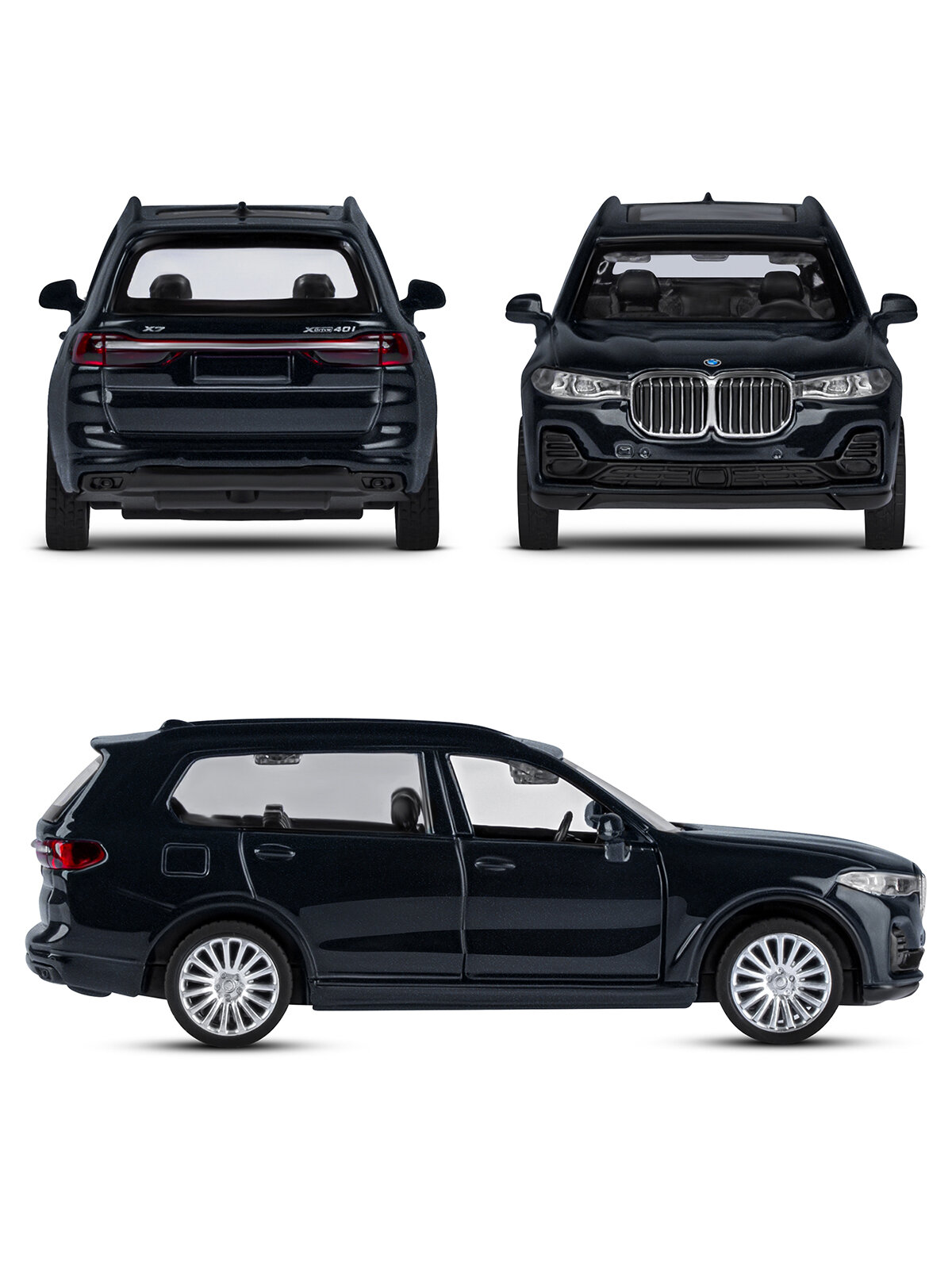 Машинка металлическая BMW X7, 1:44,, черный, инерция, откр. двери - JB1251256