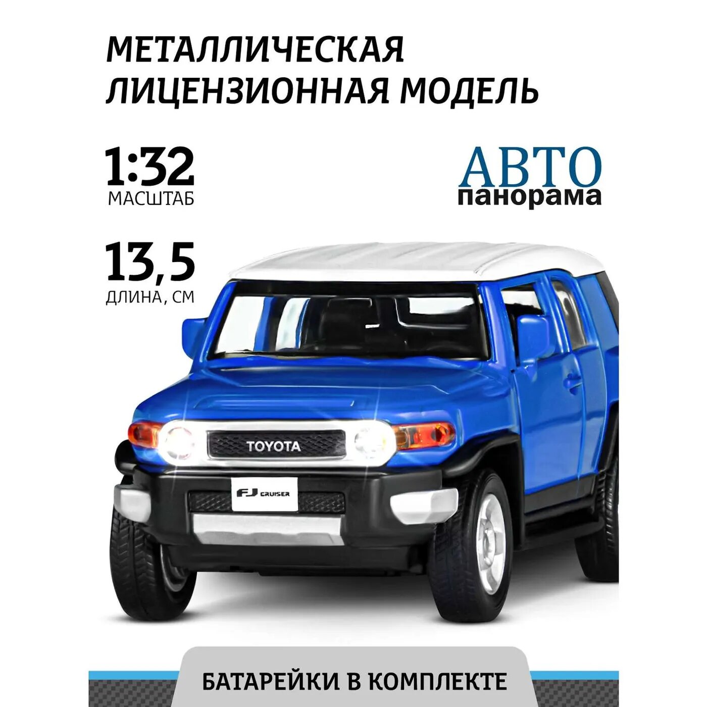 ТМ "Автопанорама" Машинка металлическая 1:32 Toyota FJ Cruiser, синий, свет, звук, откр. двери, инерция, в/к 17,5*13,5*9 см JB1251138