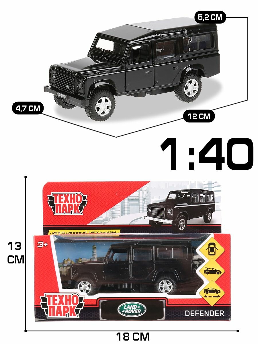 Машина инерционная Технопарк металлическая, Land Rover defender 12 см, открываются двери, черный (DEFENDER-BK)