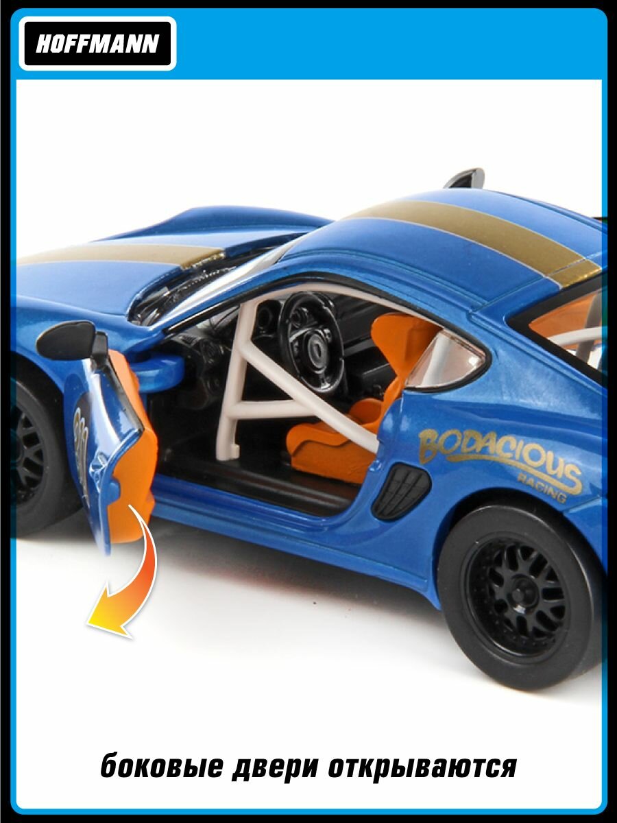 Машинка коллекционная металлическая Porsche Cayman (987) Race Version 1:32, Hoffmann / Детская инерционная игрушка для мальчиков / Модель машины для детей, со световыми и звуковыми эффектами