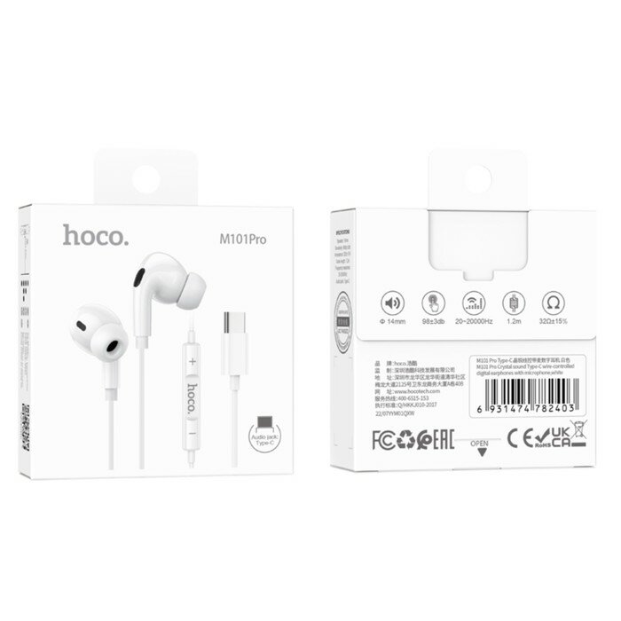 Проводные наушники Hoco M101 Pro, USB Type-C, белый
