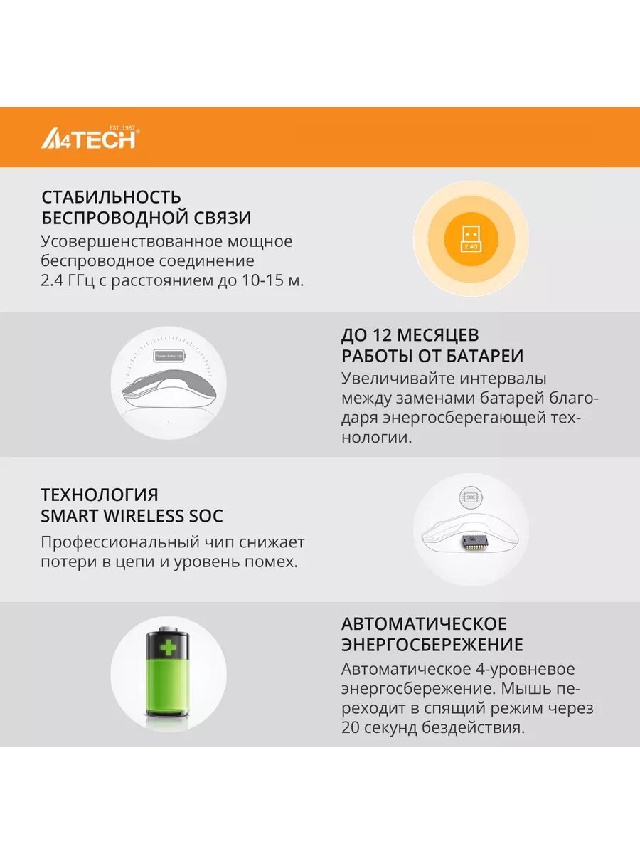 Беспроводная мышь A4Tech V-Track G3-200NS с бесшумным кликом, 1200 dpi, 3 кнопки, silent