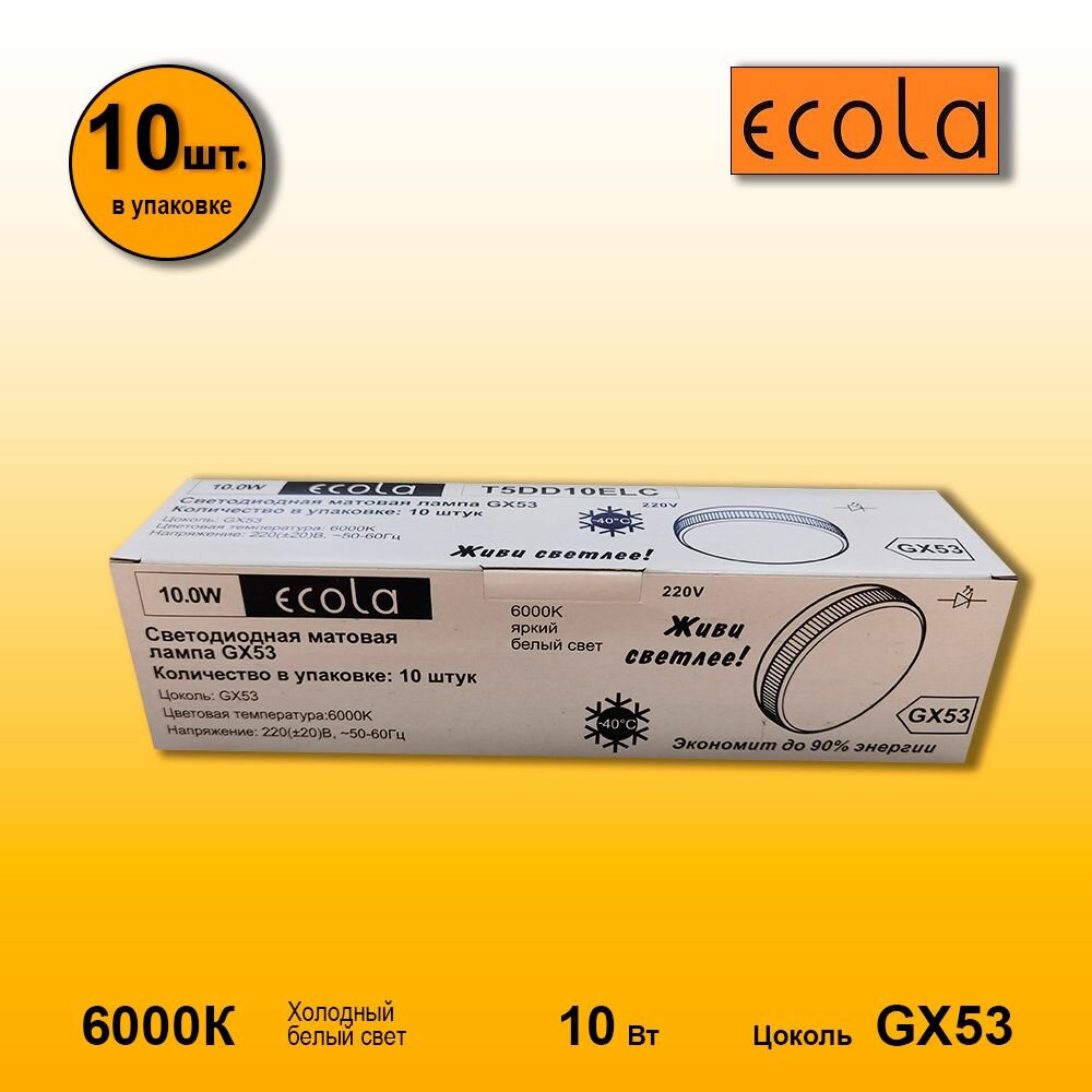 Лампочки светодиодные 10 шт., GX53 Ecola LED 10,0W 6000K Холодный белый свет, набор