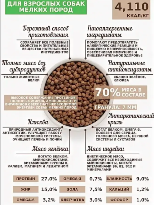 | Энергетическая ценность | 4110 ккал/кг |