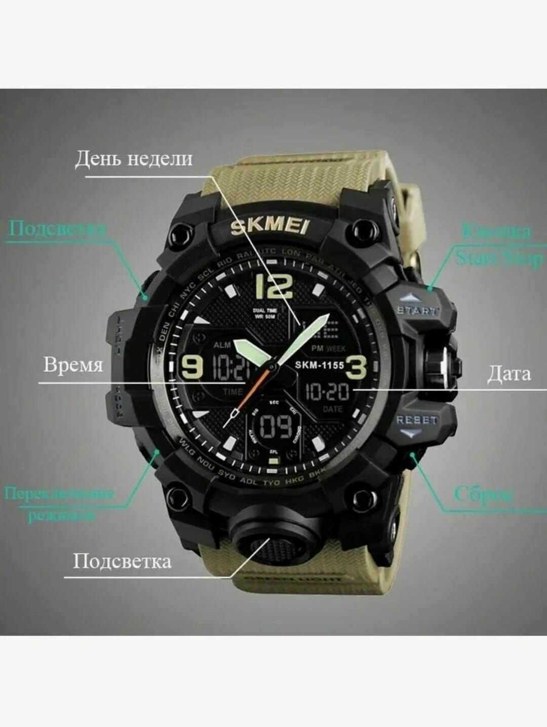Спортивные наручные часы SKMEI 1155, водонепроницаемые и ударопрочные