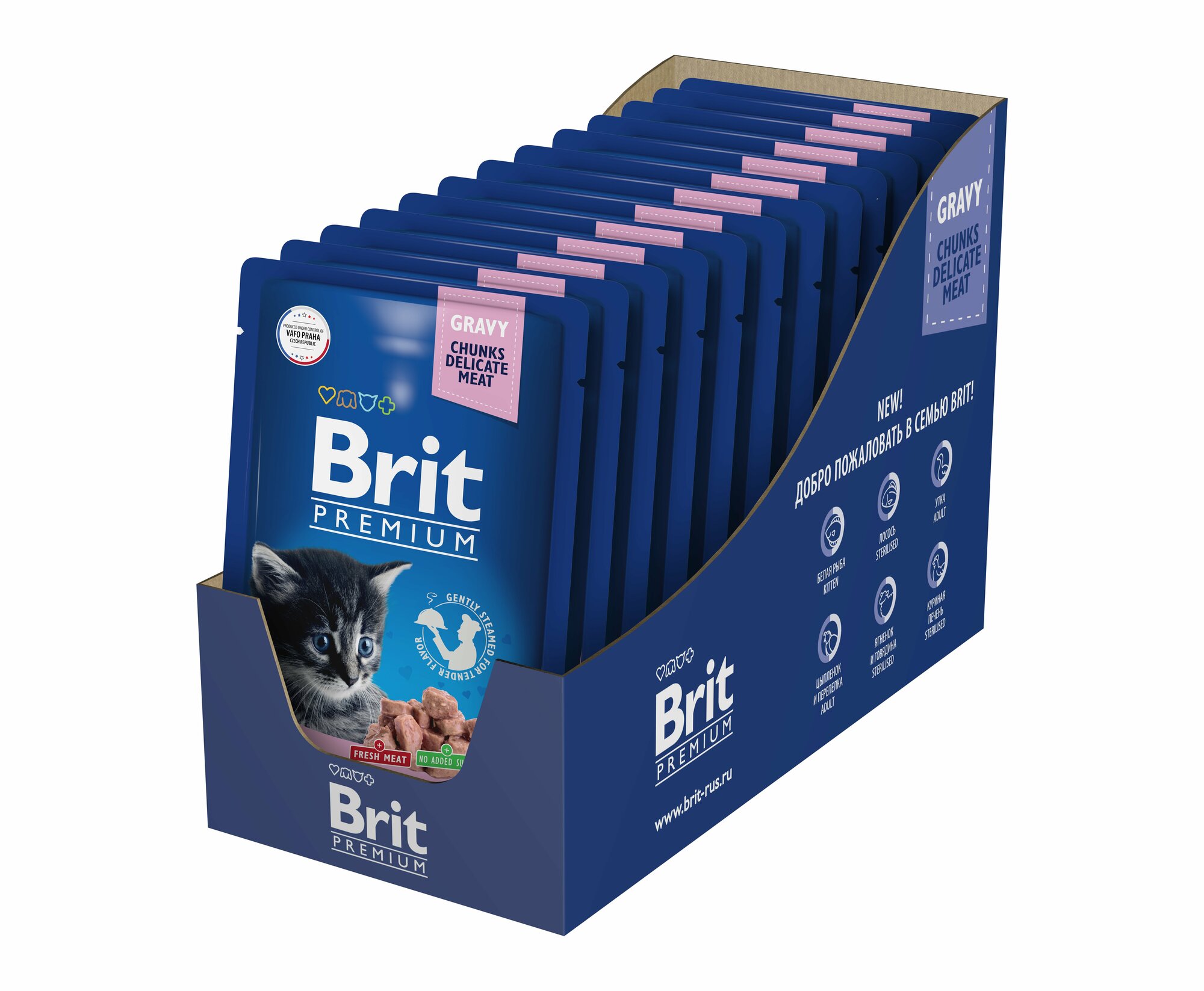 Купить BRIT PREMIUM CAT FISH CHUNKS FOR KITTEN для котят с белой рыбой в соусе (85 гр х 14 шт)