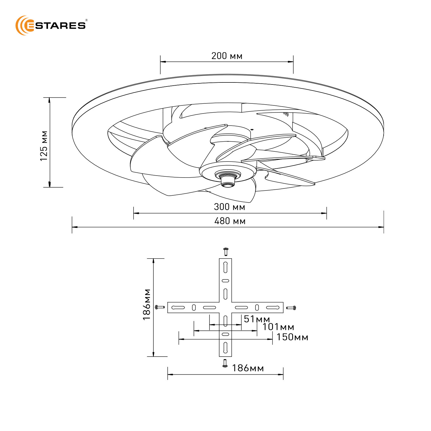 Светодиодный светильник с вентилятором и пультом FAN ONE 80W для комнат до 18 кв.м, ESTARES