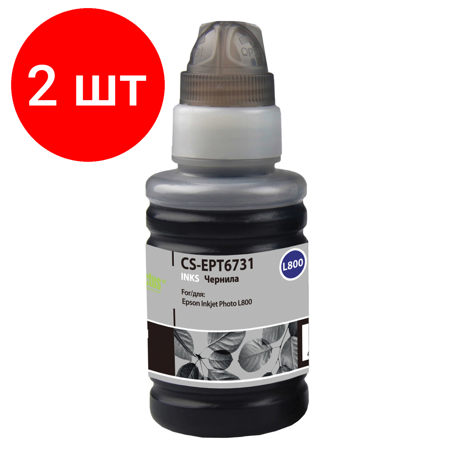 Купить Комплект 2 шт, Чернила CACTUS (CS-EPT6731) для СНПЧ EPSON L800/L810/L850/L1800, черные, 0.1 л