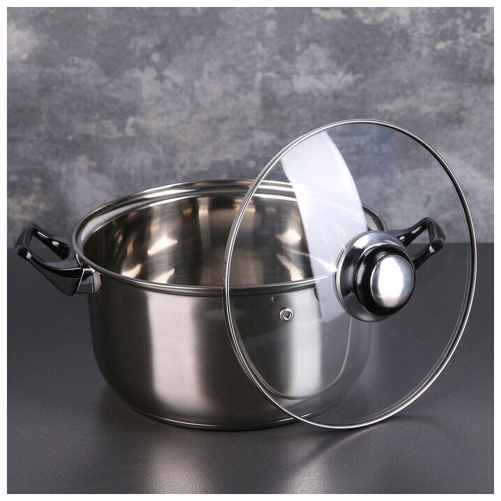Кастрюля из нержавеющей стали "Чёрная ночь", 3 л, стеклянная крышка