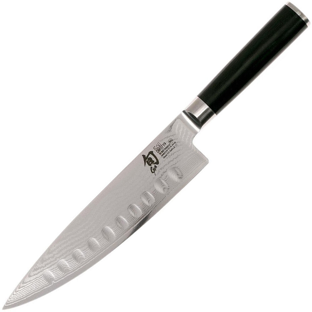 Нож кухонный поварской гюйто из дамасской стали с углублениями на лезвии, 21.6 см, рукоять из стабилизированной древесины, черный, серия Shun Classic, Kai, KAI-DM-0719 интересное: