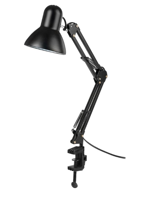 Настольная лампа цвет белый, мощность светильника 60Вт, Е27, высота 60 см подставка+струбцина в комплекте